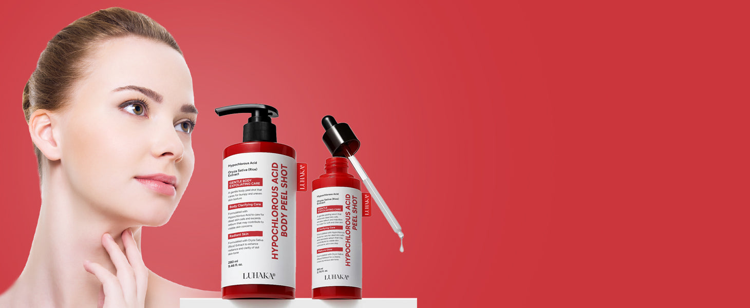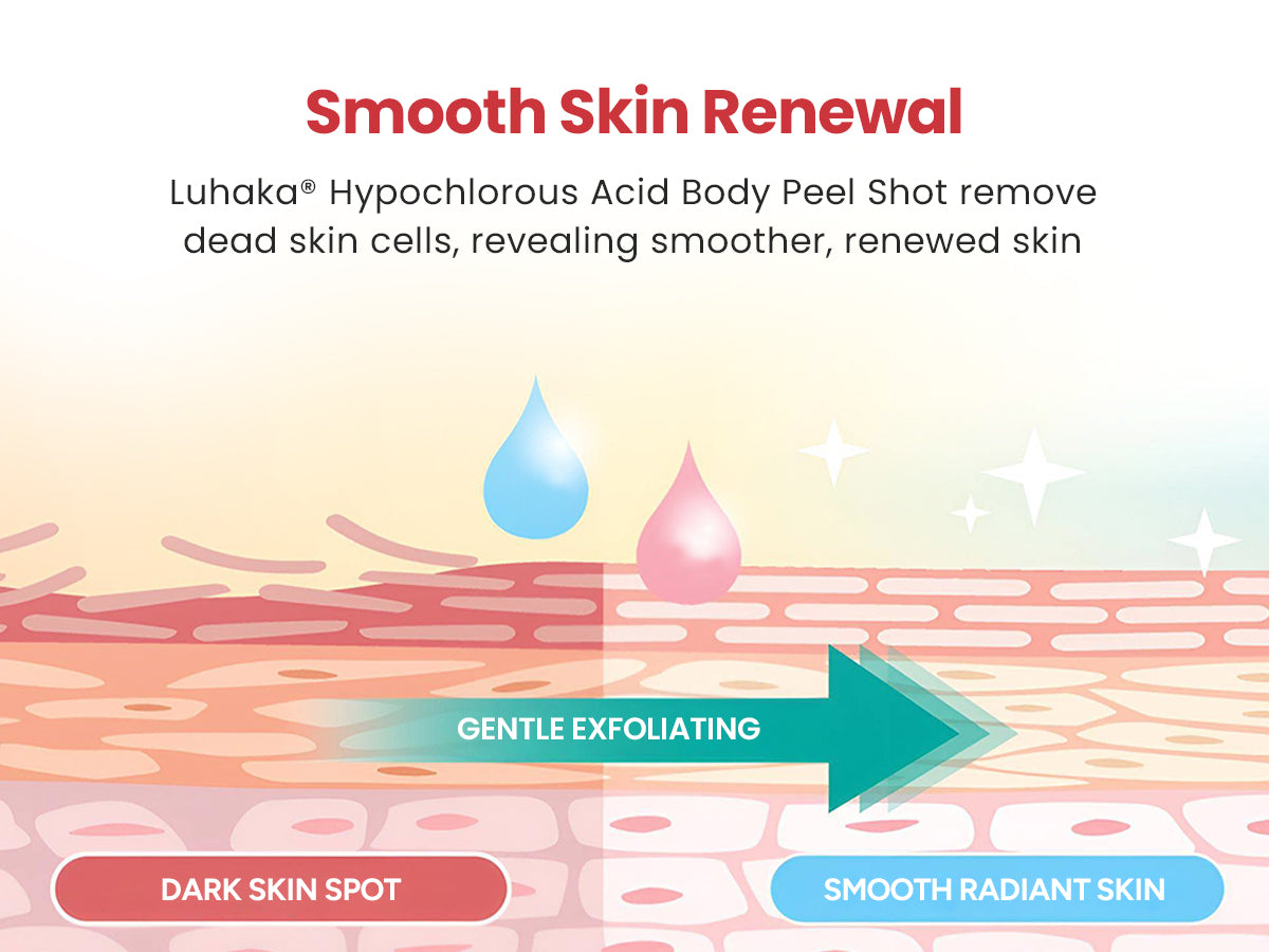 The medloube Hypochlorous Acid Body Peel Shot works by combining gentle exfoliation and skin-reviving hydration in one step. Hypochlorous Acid helps break down dead skin buildup, unclog pores, and clear away impurities that cause dullness and rough texture.