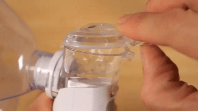 Fill & Power: Add your prescribed medication or saline to the medical bottle. Install 2 AA batteries or plug in the USB cable.